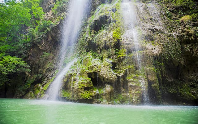 景区青山绿水、风光绝美、四季如春。整个漂流河道植被茂密,十里峡谷长廊、绝壁一线天,在峡谷中穿越而过,不仅可以观大自然的鬼斧奇观更能与从天而降的瀑布群来一次亲密接触,还免去了夏季烈日暴晒之苦。